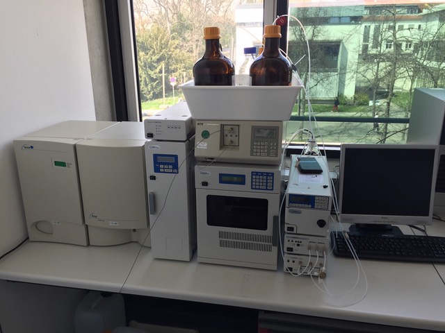 We employ a high performance liquid chromatography (HPLC) system with a chilled autosampler connected to an eight-channel CoulArray® electrochemical detector or a boron-doped diamond electrode (ESA) for the sensitive and selective detection and quantification of redox-active analytes, such as vitamin E and its metabolites, reduced and oxidised glutathione, and more.